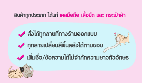 สินค้ามีทั้งสกรีนลายที่ทางร้านออกแบบเอง และรับผลิตตามลายที่ลูกค้ามีมาให้นะคะ ลูกค้าสามารถเข้าไปดูผลงานสินค้าของทางร้านได้ทางเพจ facebook ด้านล่างเลยค่า ลายของทางร้านมีให้เลือกหลากหลายแนวเหมาะกับทุกเพศทุกวัยน๊า